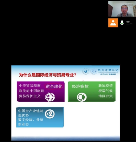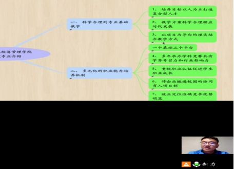 在线上,老师们从科学合理的专业基础教学、多元化的职业能力培养机制等,为新生详细地介绍了各专业的培养目标、教学方案、方式等。并结合各专业实际,在面对经济全球化趋势下如何通过校企深度合作、学科竞赛等,使同学们能够将理论知识转变为实践能力。专业介绍及人才培训方案解读能够让新生开始接触到自己的专业,帮助他们更深层次地了解各自所学专业、把握未来就业方向和前景,从而使新生确立清晰的学习目标,探寻未来的工作方向。