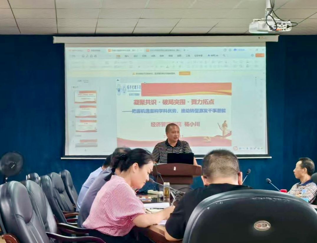 杨小川院长作了以“凝聚共识・破局突围・戮力拓点—把握机遇重构学科优势,推动转型激发干事潜能”为主题的专题报告。一是向教师们分析、研判学院发展现状。从专业的建设视角详细阐述了目前学院发展所面临的各类问题。特别就智能+专业建设、智能+教学模式创新、课程数字化工程、优质教材培育等进行分析。二是向老师们传达了学校干部教育培训精神。主要涉及到专业优化调整、十五五规划、学科和科研工作的共性问题分析,结合学院申硕的专业分析竞争对手申报情况,以及学校下一步工作计划。三是结合申硕、十五五规划和绩效改革、AI赋能教育教学等对下一步的工作思路进行了解读。