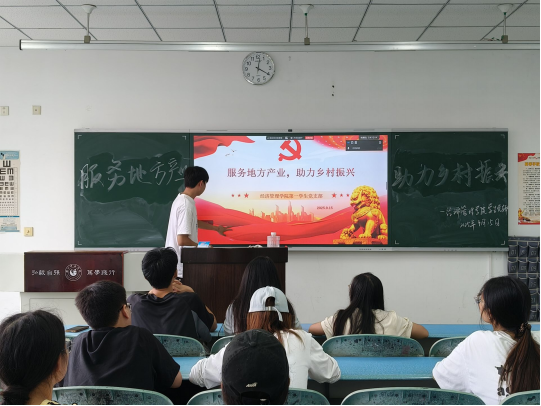 本网讯(图、文/韩欣雨)经济管理学院学生第一党支部、学生第二党支部、学生第三党支部于9月15日在行知楼217教室举行了"服务地方产业,助力乡村振兴"主题党日活动。活动由各学生党支部书记主持,全体党员参与。