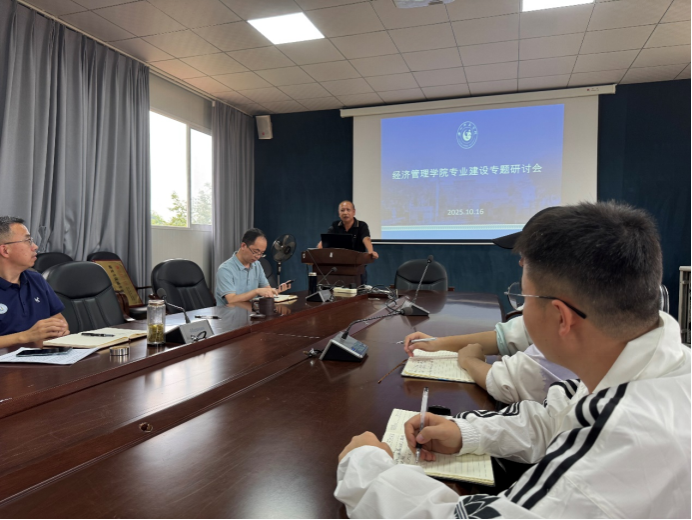 10月16日经管学院在会议室召开新学期第一次专业建设专题研讨会。会议由学院党委书记胡亚会主持,全体教职员工参加了会议。