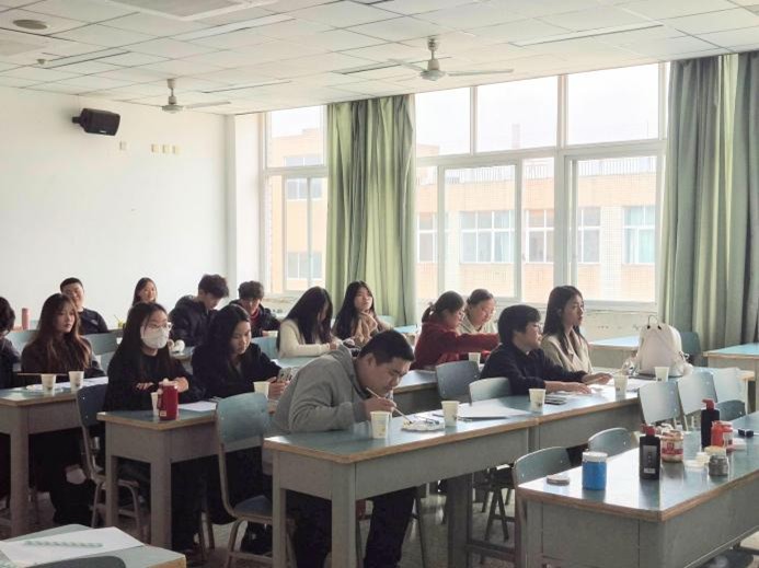 本网讯(文/伍晓敏、图/伍晓敏)为推动公共艺术课程线下教学落地见效,2025年12月15日下午,美育名师工作室教师陈聪组织的公共艺术实践课程在行知楼504教室开展,各专业学生代表踊跃参与,以书法实践为纽带,开启了一场师生共学的美育之旅。