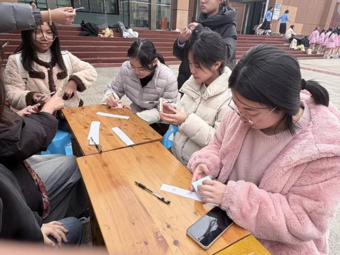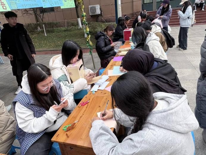 本网讯(文/杨泳铃,图/张馨怡)为丰富校园文化生活,2025年12月12日中午12:00,经济管理学院学生会劳生部在桂花广场开展了一封信活动。本次活动以文字为桥,以书信为媒,旨在引导学子在快节奏的时代中慢下来,通过笔墨传递真情,为经管学子提供一个表达心声、沉淀自我的场所,全校200余名同学参与。